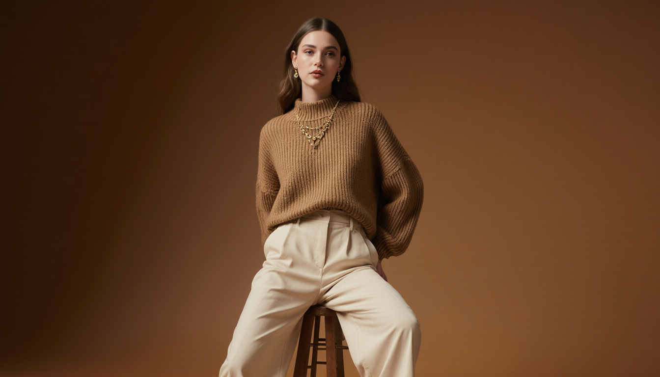 Elegance on a Snowy Day with the ZESICA Knit Crew Pullover