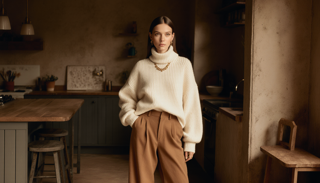 Moving beyond the formality of a business casual ensemble, the next chapter embraces the relaxation of the holiday with soft knit textures for a casual yet chic Thanksgiving gathering.