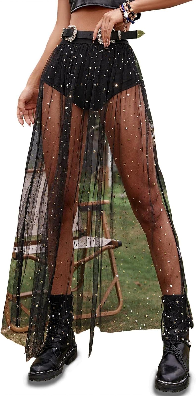 Turn heads at every festival with this stunning sheer mesh maxi skirt! Perfect for creating those viral rave outfit moments and unforgettable festival looks. This versatile see-through skirt adds instant edge to any party ensemble. Whether you’re styling it over shorts for festival season or layering it with your favorite bodysuit for clubbing, this piece is guaranteed to make you stand out! Style it as: Festival layering piece over shorts, Rave outfit with bodysuit, Club wear with crop tops, Going out look enhancer
